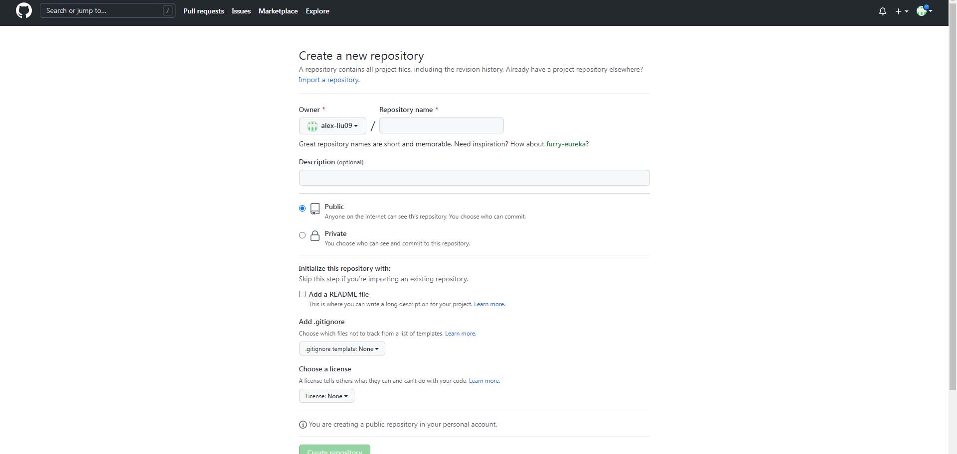 点击 Create repository,建立仓库。