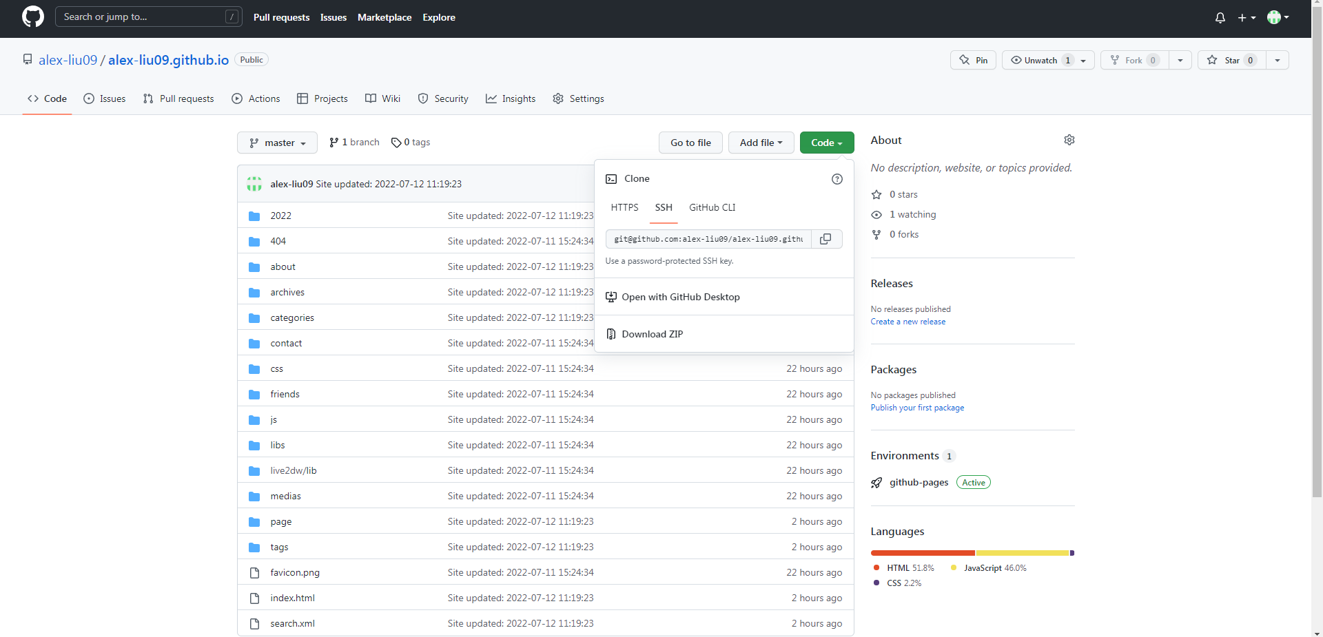 若是测试发现 GitHub Pages 仍是没有任何变化,不要着急,等几分钟以后再次刷新便可。